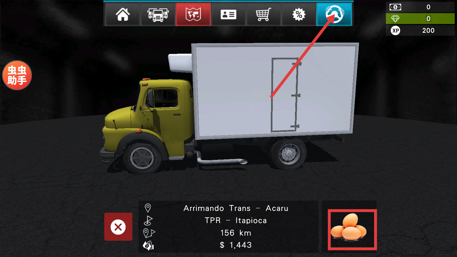 2、点击【方向盘-图标】,进入卡车驾驶界面,准备开始【鸡蛋运输-任务】。