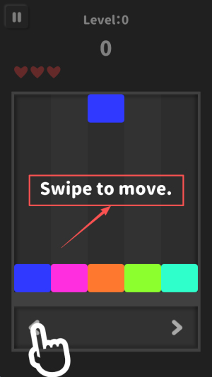 2、接着,通过滑动屏幕来移动方块,使其落入相同颜色的列中。