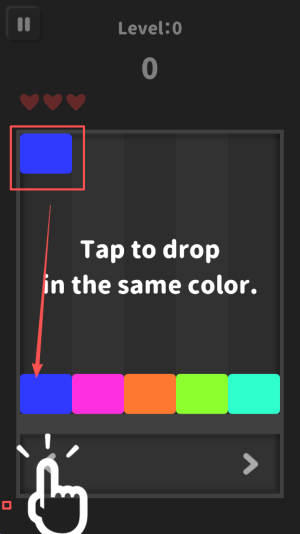 3、然后,点击屏幕让方块下落到相同颜色的区域以得分。