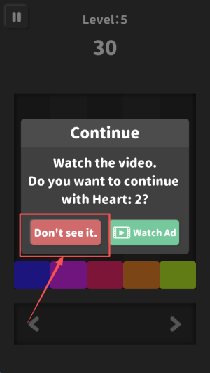 4、最后,如果生命值耗尽,可以选择观看视频广告或放弃继续游戏。