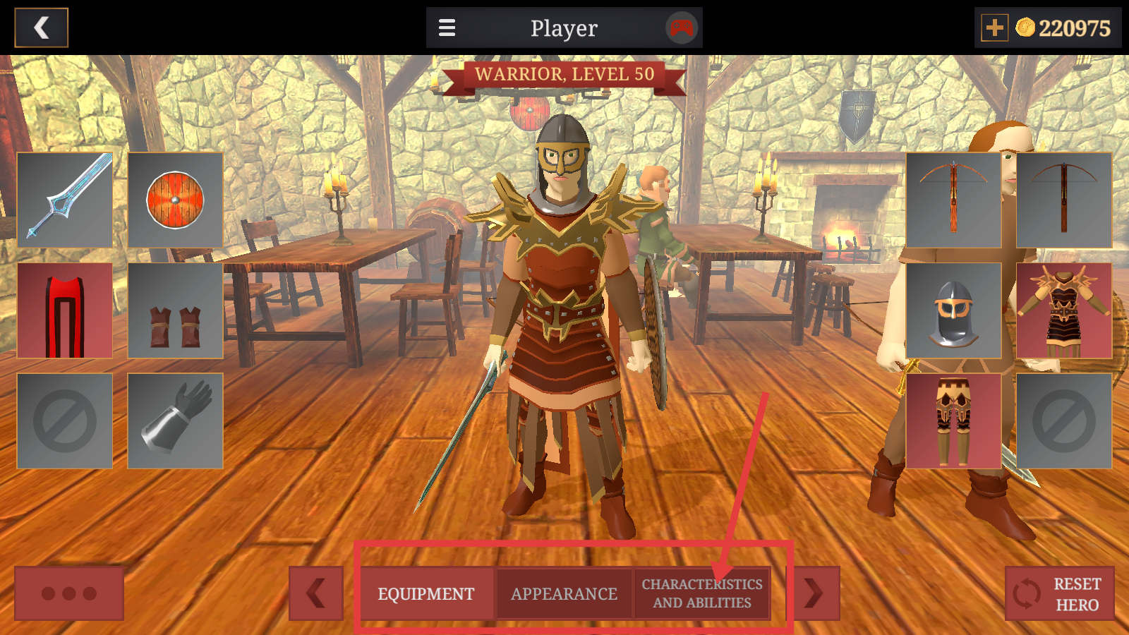 1、在角色界面,可切换管理装备、调整外观、提升属性,打造强力【WARRIOR-LEVEL50】角色。