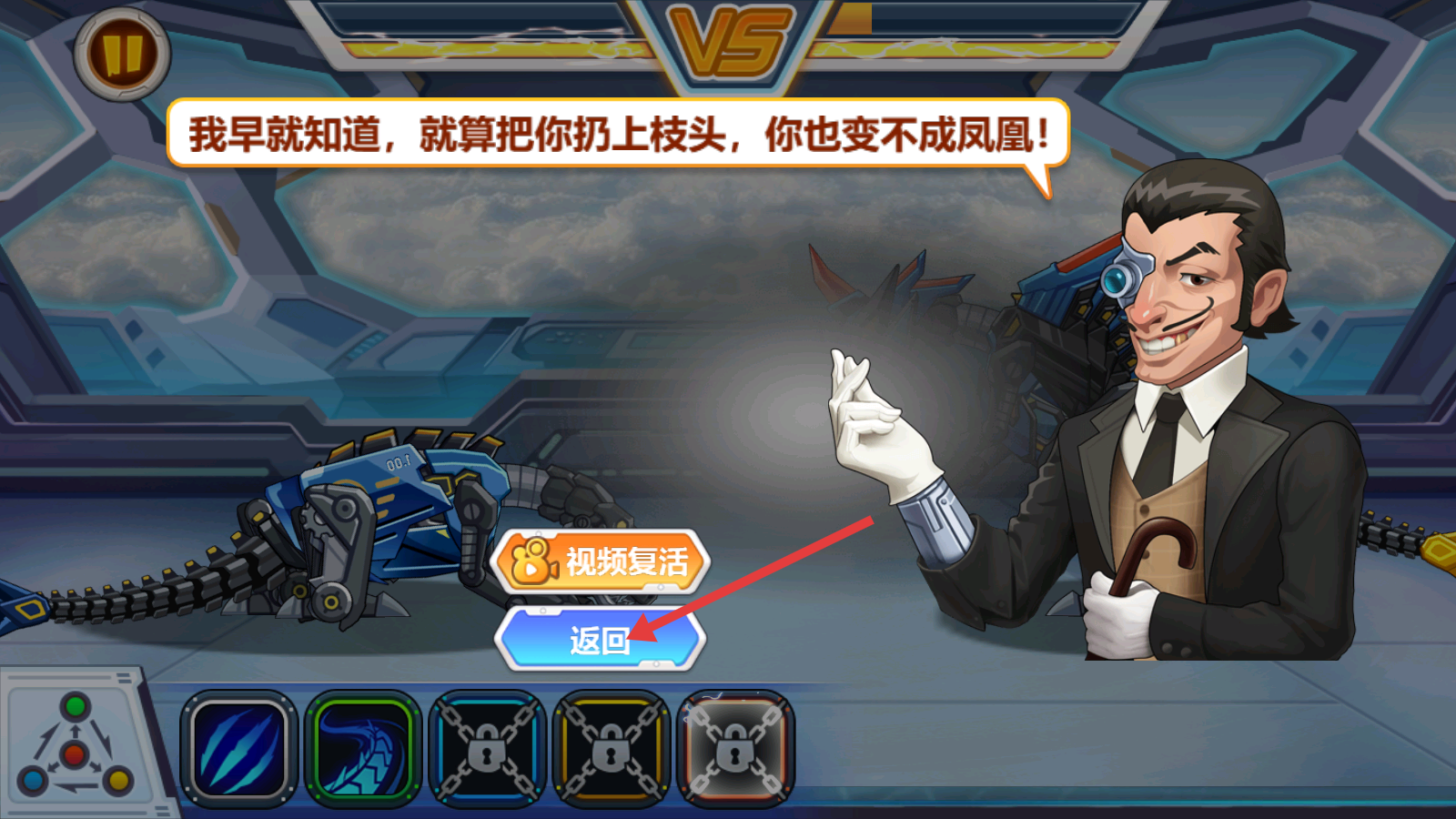 4、若战斗失败,可选择【视频复活】继续战斗,或点击【返回】退出战斗,根据自身需求选择操作,以便后续调整战力后再挑战。