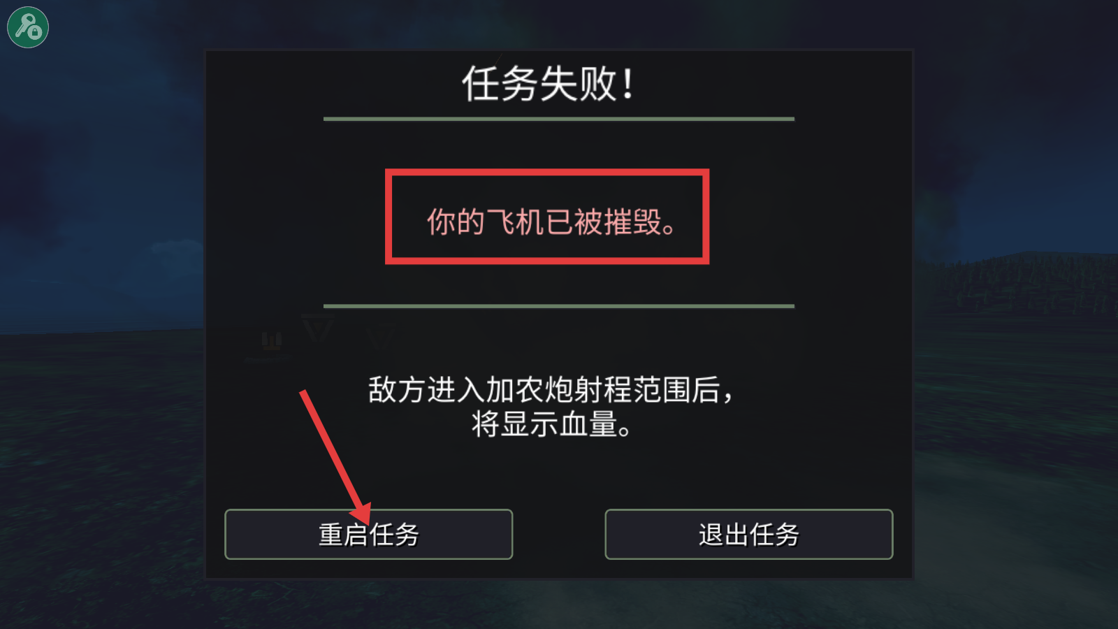 4、若任务失败且飞机被摧毁,点击【重启任务】重新挑战,继续尝试完成摧毁战斗机中队等目标的任务。