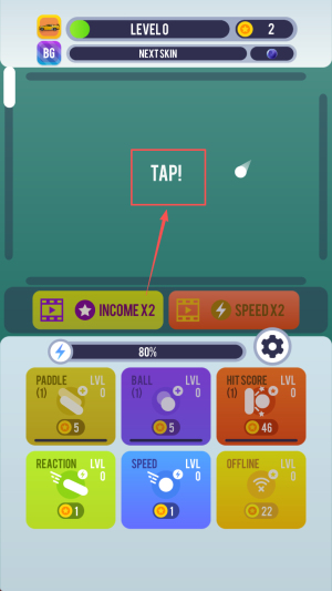 1、首先,点击“TAP!”启动弹球,让球撞击方块得分。