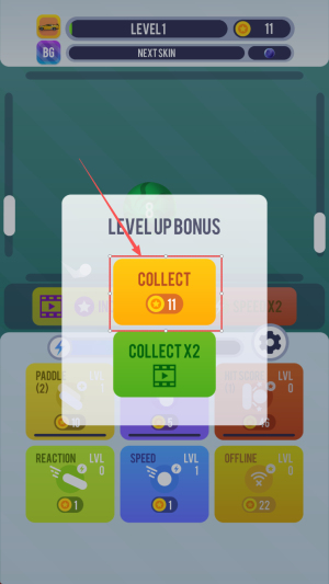 4、最后,点击“COLLECT X2”观看广告,领取双倍金币继续强化。