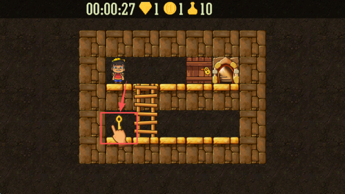 1、玩法趣味探索:操控探险家在地下神殿闯关,需寻找钥匙开启通关门,过程中收集砖石,每一次发现关键道具都充满惊喜。