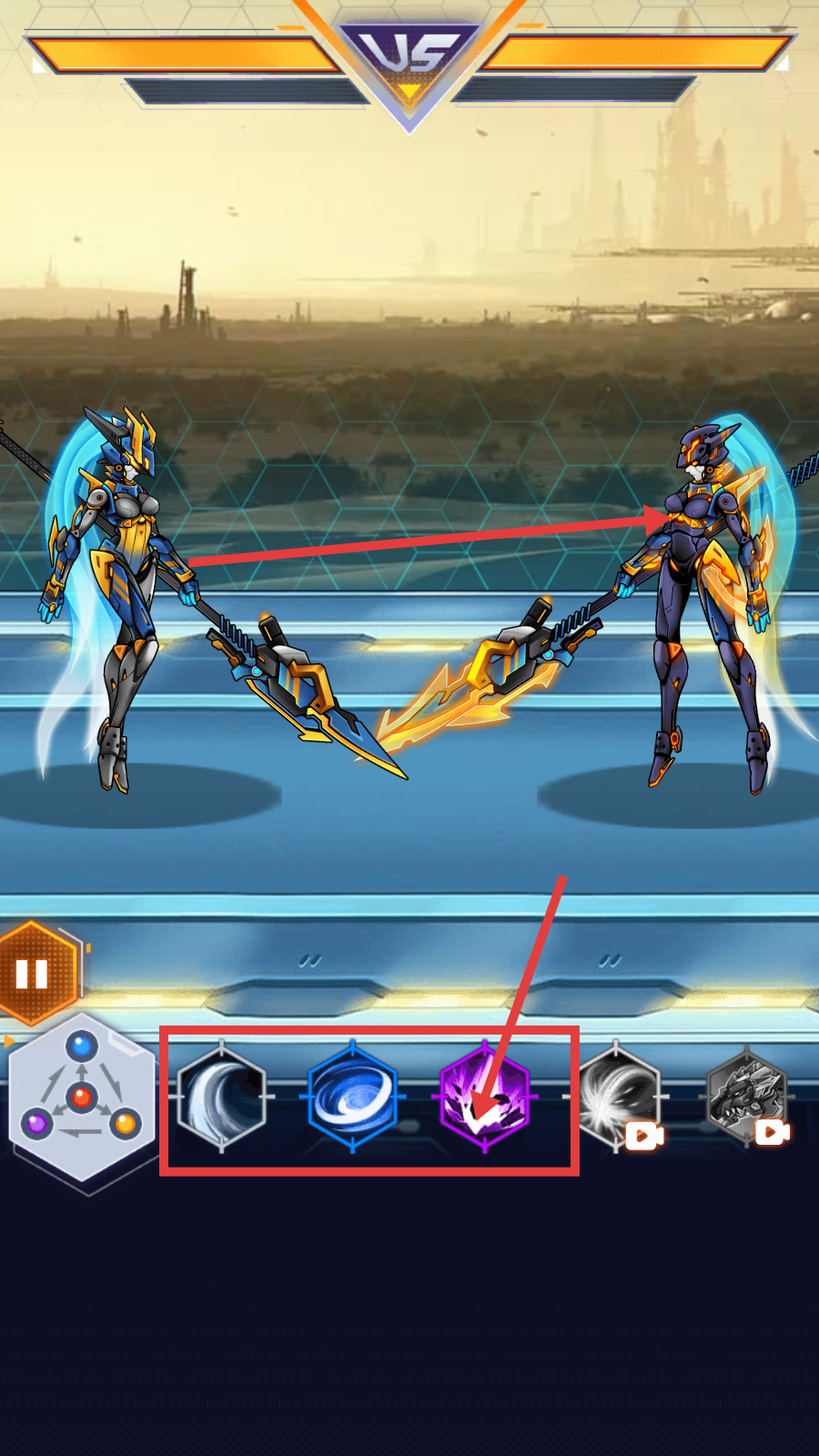 3、战斗时操控机甲,合理使用下方紫色技能等,针对敌方机甲释放技能,把握技能释放时机,提升对战胜率。