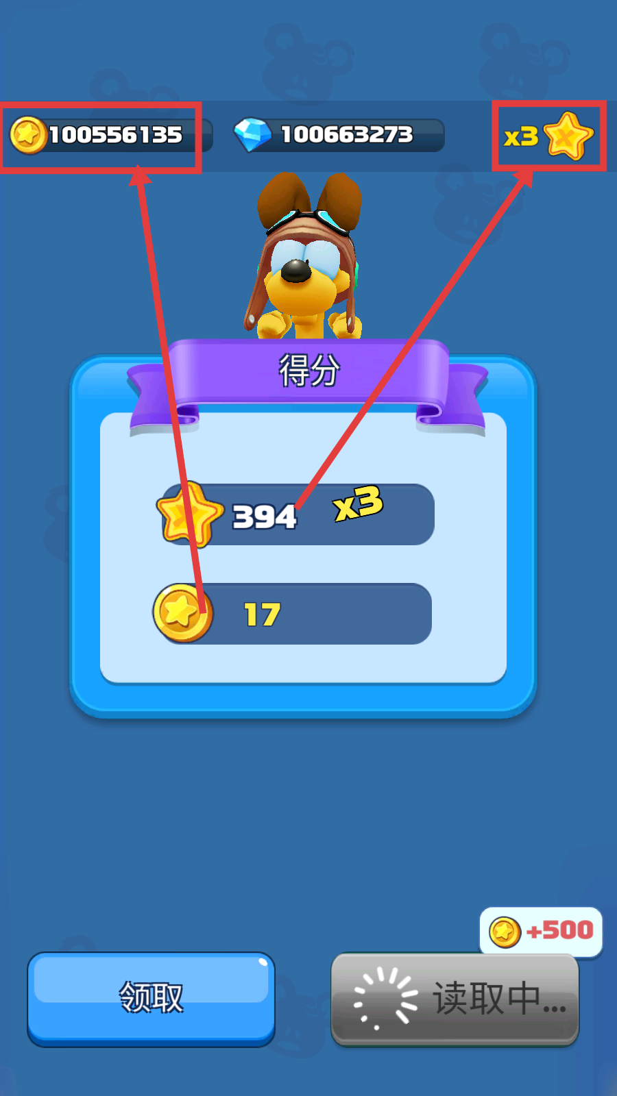 3、游戏结束后查看得分与金币,点击【领取】按钮,获取奖励,积累资源。
