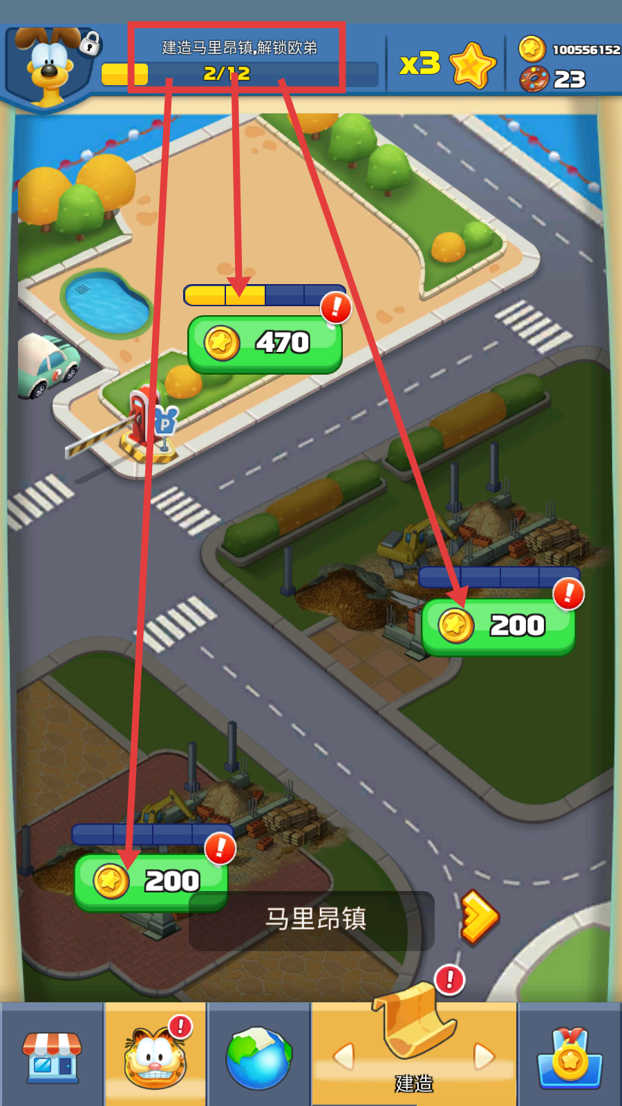 4、参与【建造马里昂镇】任务,花费金币推进建造进度(如200、470金币的建造项),解锁欧弟角色,拓展游戏内容。