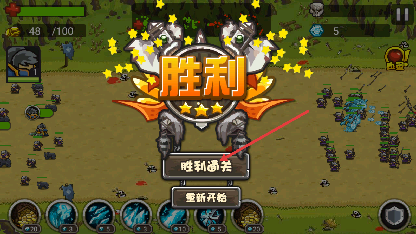 4、战斗胜利后点击“胜利通关”,获取三星评价,继续挑战下一关,积累资源与经验。