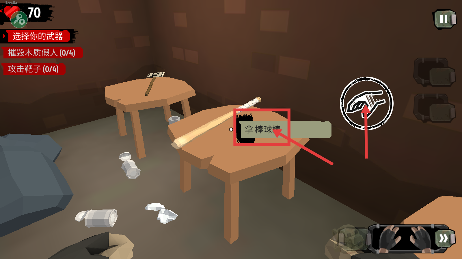 2、进入建筑后,选择武器(如拿棒球棒),完成“选择你的武器”任务,为后续战斗做准备。