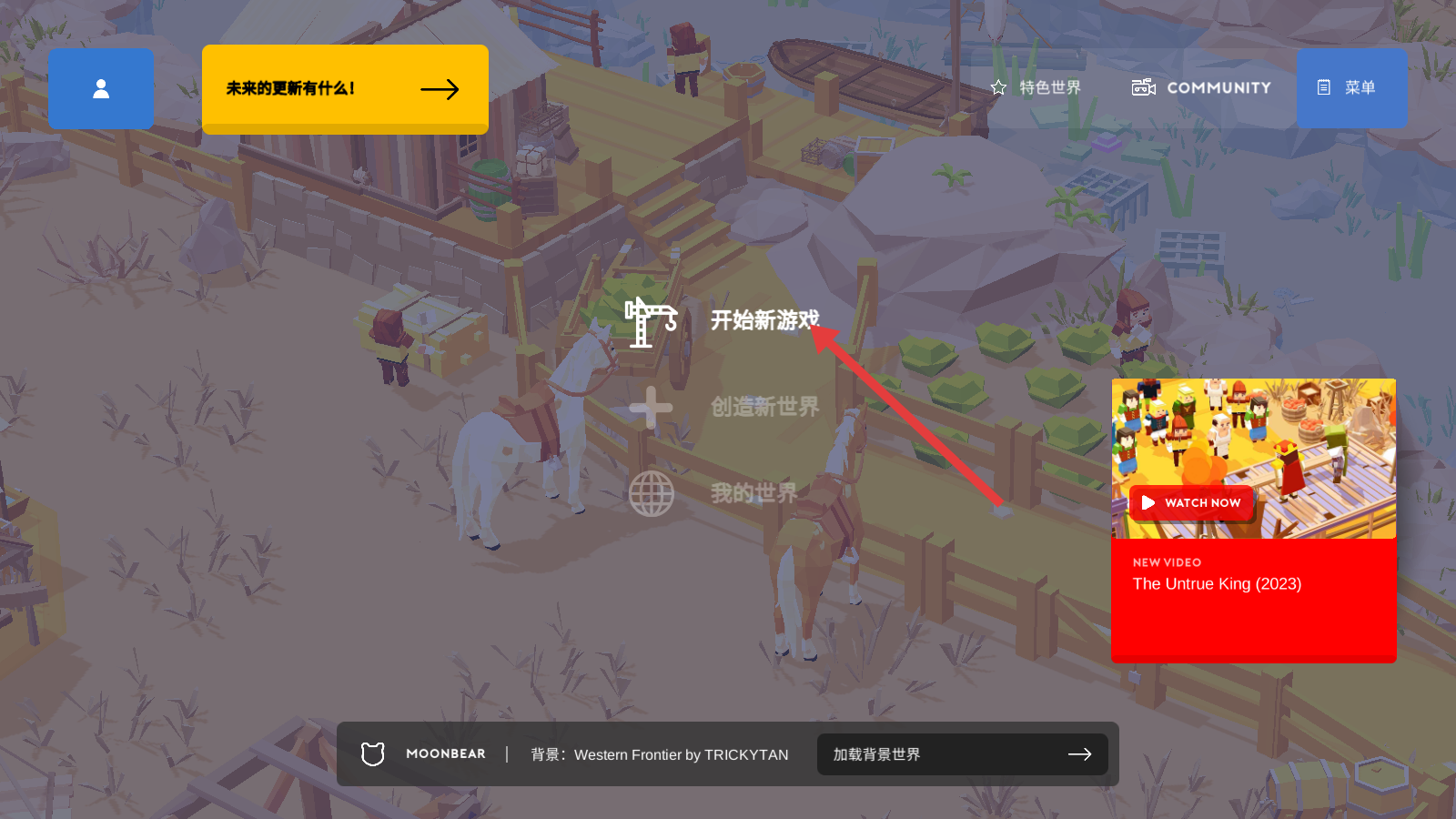 1、进入游戏界面,点击“开始新游戏”,进入建筑风格的游戏场景,开启游戏探索。