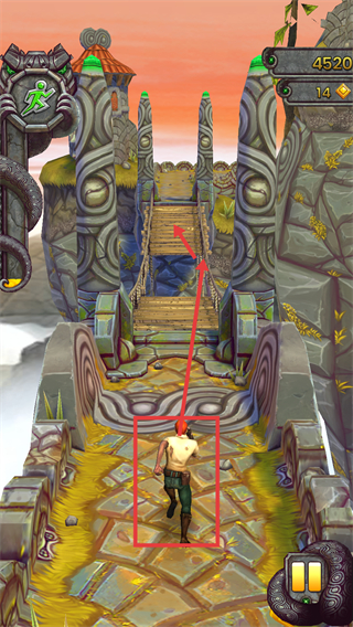 2、跑酷时遇到吊桥等地形,操控角色平稳通过,注意前方路径变化,保持奔跑节奏。