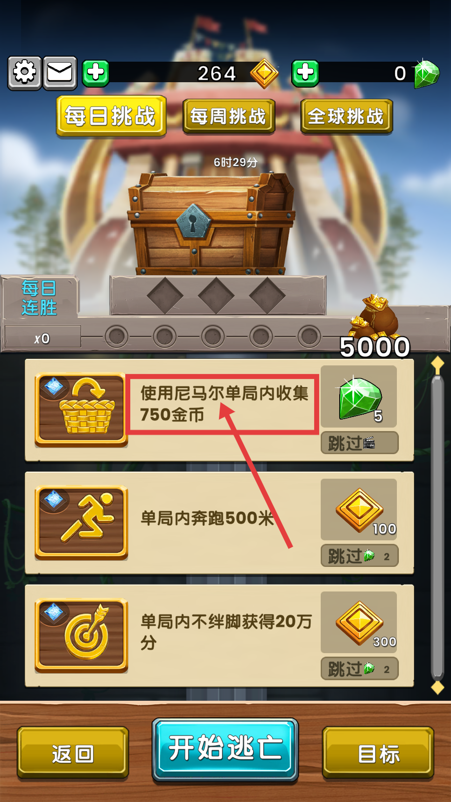 1、参与【每日挑战】,完成【使用尼马尔单局内收集750金币】任务,可获取钻石奖励,助力资源积累。