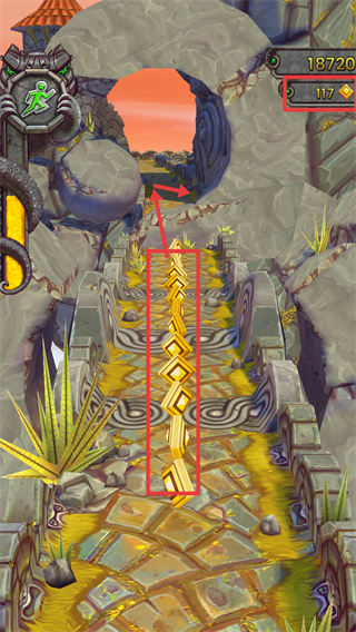 3、跑酷路径上尽可能收集中间的【金币-钻石】,同时留意前方路径变化,避免失误。