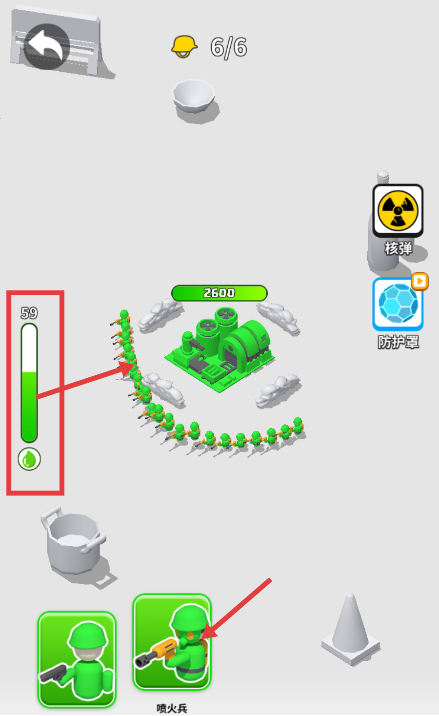 3、利用【喷火兵】的火焰攻击敌人,快速清理敌方单位,减少自身损耗,稳步推进战场局势。