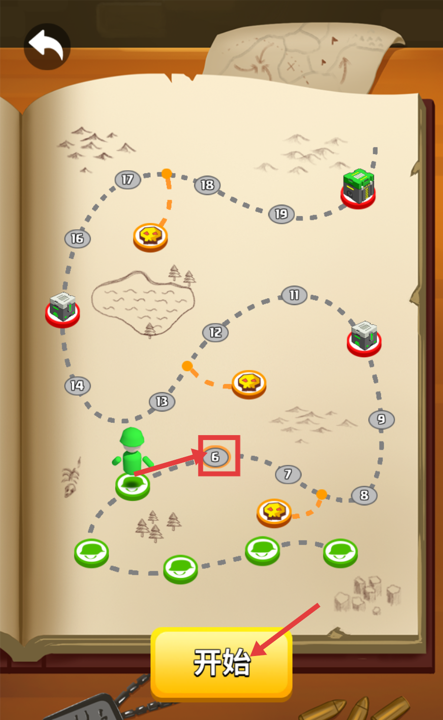 1、在关卡地图选择【6-关】,点击下方【开始】按钮进入战斗,按地图路径推进解锁后续关卡。