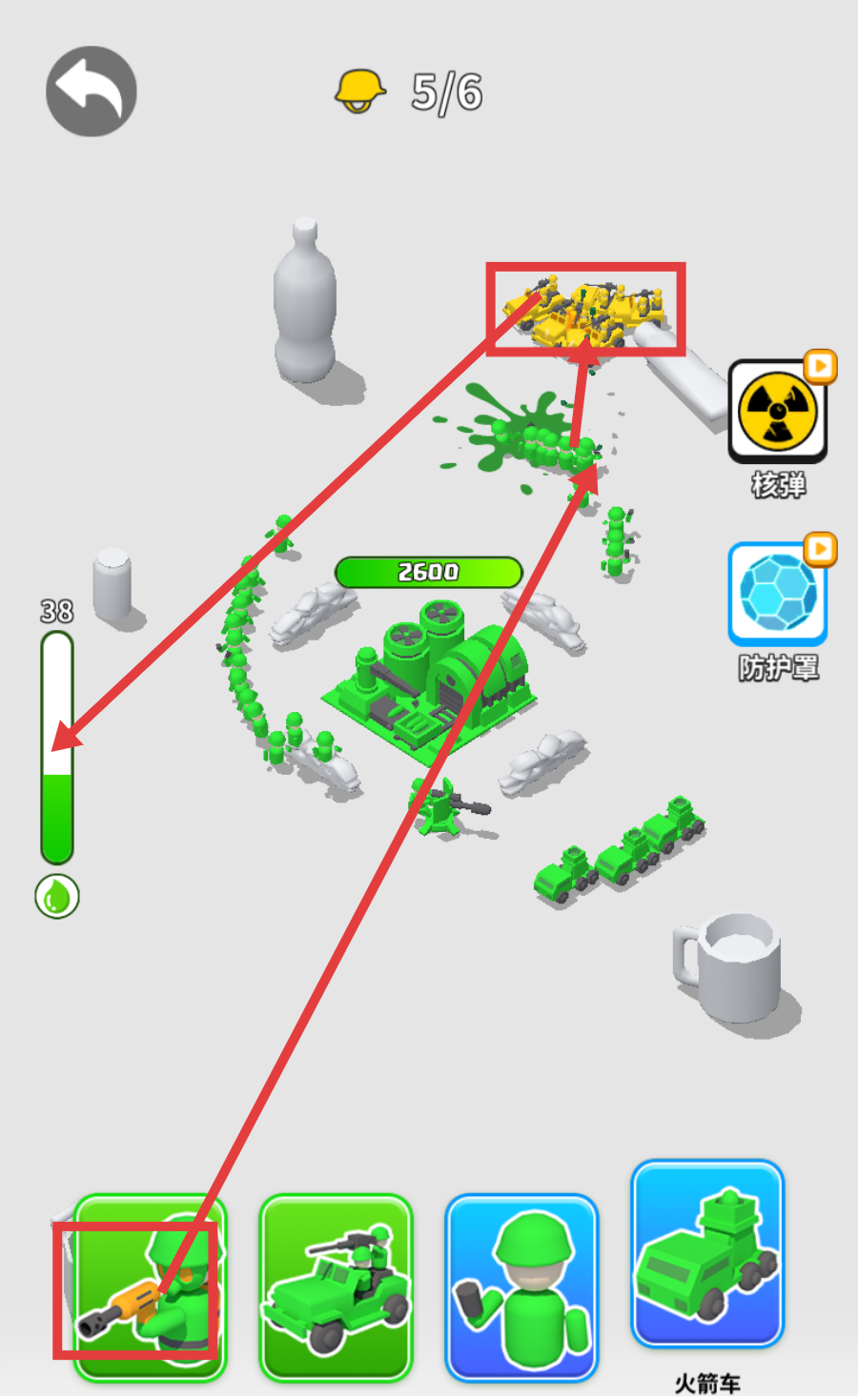 2、战斗中使用【喷火兵】攻击敌方黄色单位,留意左侧资源条,合理调配兵力提升战力。