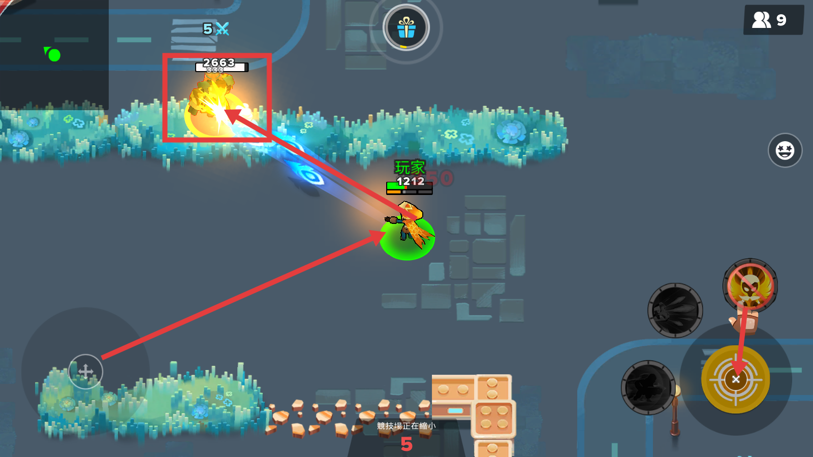 2、战斗中瞄准【2663】敌方单位,使用右侧攻击按钮发起进攻,积累战力提升战斗优势。