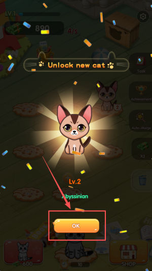 2、接着,当你解锁新的猫咪时,点击“OK”按钮确认。