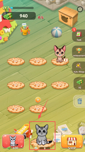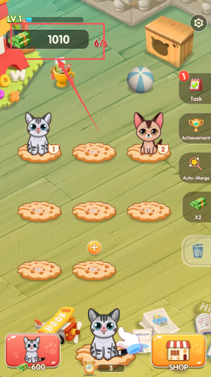 3、然后,继续合并猫咪以赚取金币,并提升你的等级。