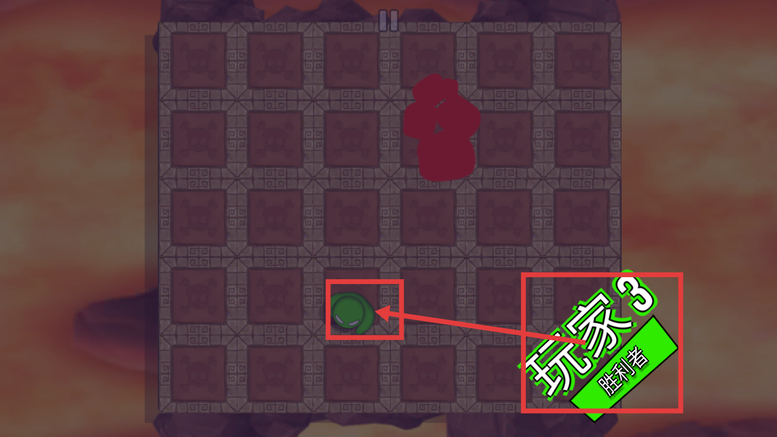 3、学习【玩家3-胜利者】的绿色角色走位策略,在格子中灵活移动,坚持到最后,成为生存赢家。
