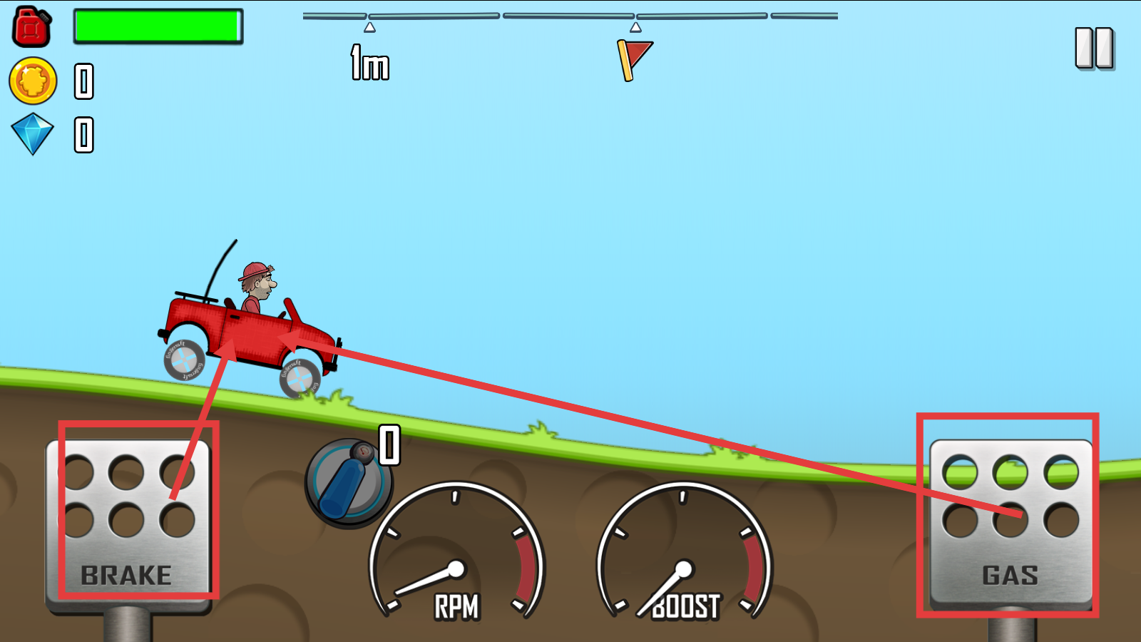 2、游戏中需操控【BRAKE】刹车踏板和【GAS】油门踏板,根据地形调整车辆行驶状态。