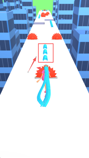 2、专注收集碎片:控制角色在场景中移动,主动触碰头发碎片,快速积累长度,让头发逐步变长,为通关打下基础。