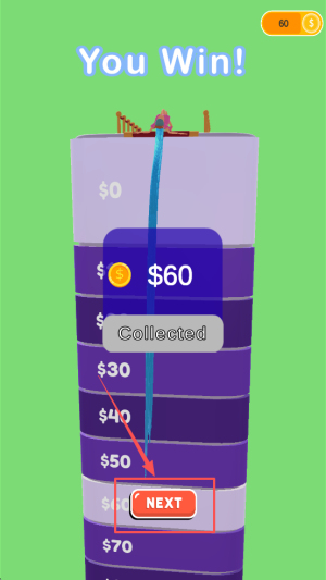 4、最后,到达终点后,点击“NEXT”按钮进入下一关。