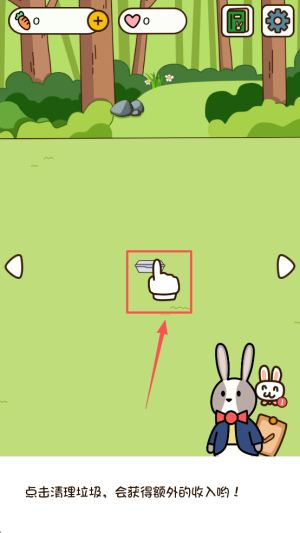 1、首先,点击屏幕上的手套图标清理垃圾,以获得额外收入。