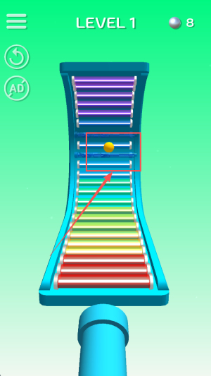 3、然后,通过点击屏幕控制弹球的发射,使其通过彩色通道。
