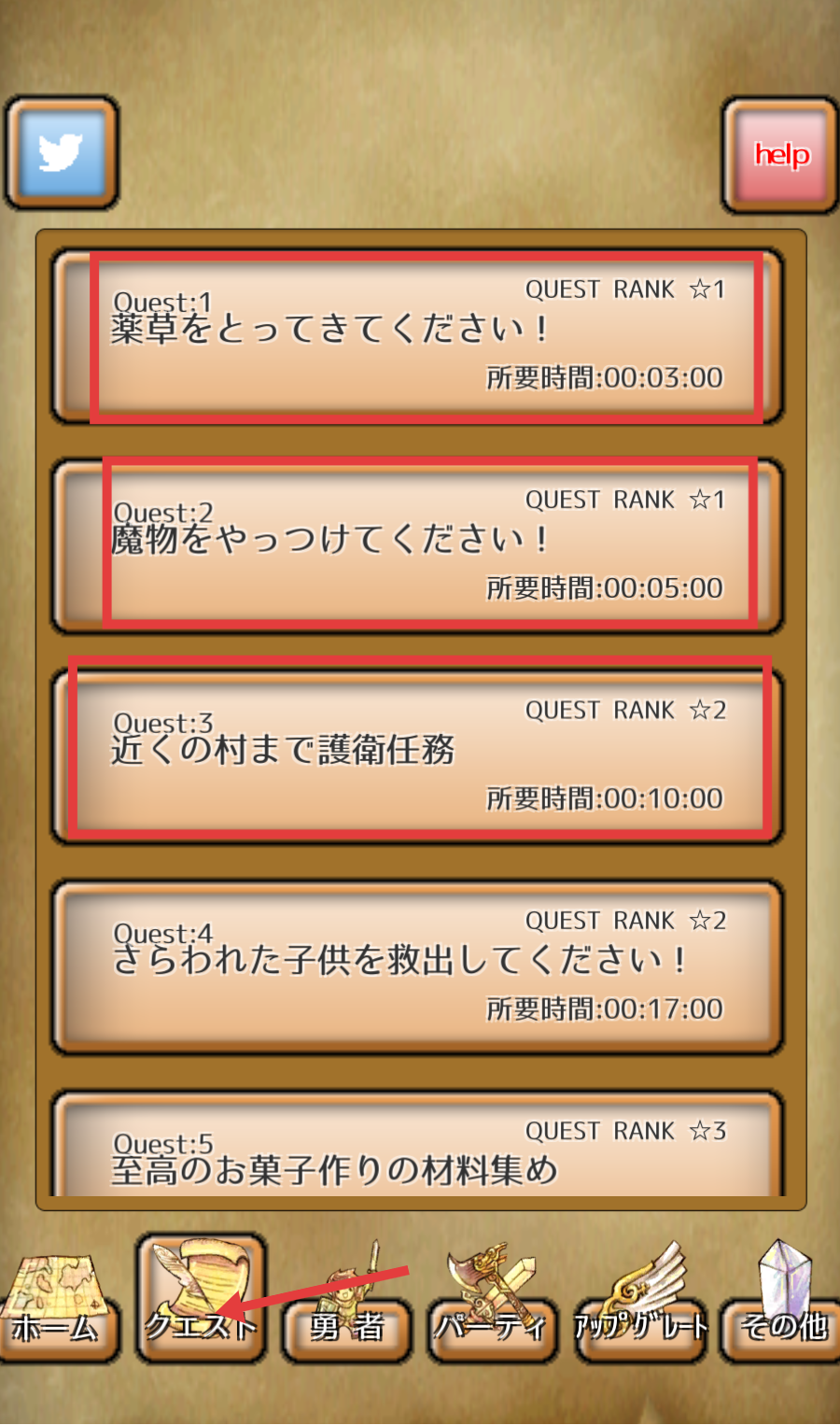 1、点击【クエスト】界面,选择【Quest-1】【Quest-2】【Quest-3】等任务,根据任务等级和所需时间接取,开启冒险之旅。