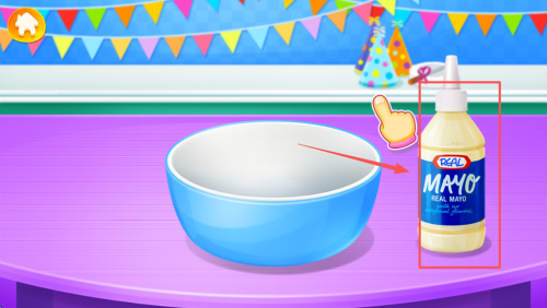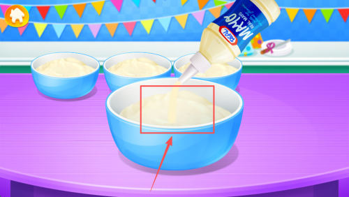 2、接着,根据指示将蛋黄酱挤入碗中。