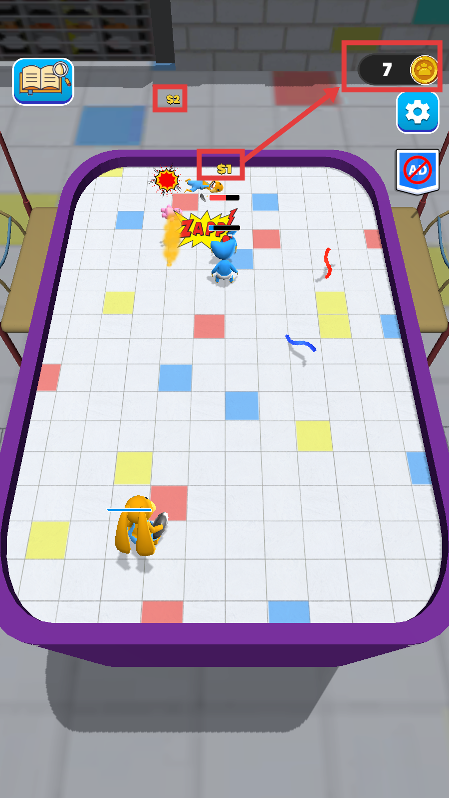 3、金币累计至【7】,击败敌人获取【$1】【$2】资源,持续提升金币数量。