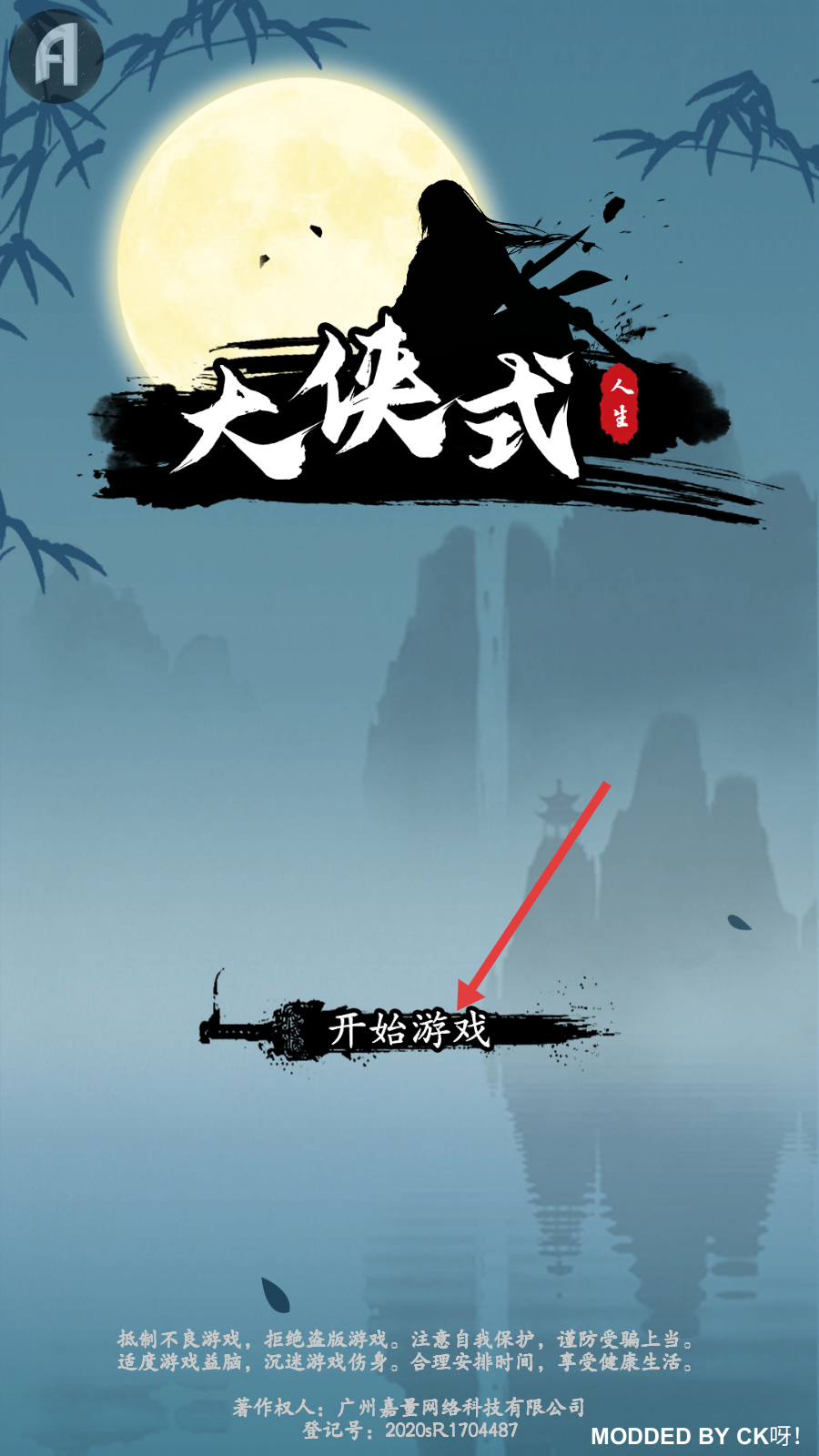 1、进入游戏后点击【开始游戏】,开启你的武侠江湖之旅。