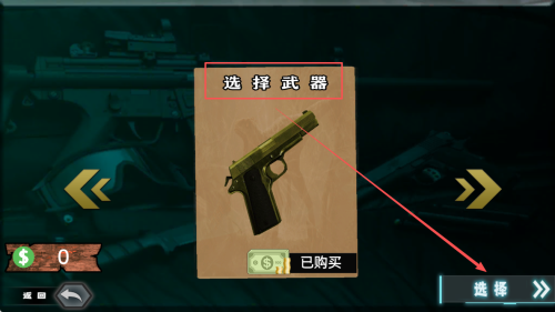 3、如何选择武器:在武器选择界面,点击“选择”按钮,选择你想要使用的武器。