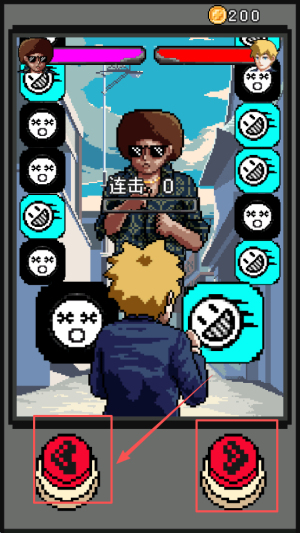 4、最后,在格斗界面,点击左右两侧的按钮进行攻击和防御操作。