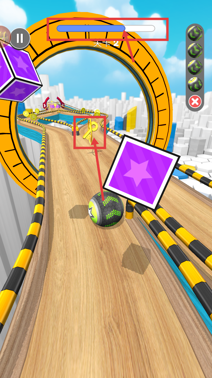 2、行驶中沿路径收集金币,注意保持球的平衡,避免掉落,积累资源助力通关。