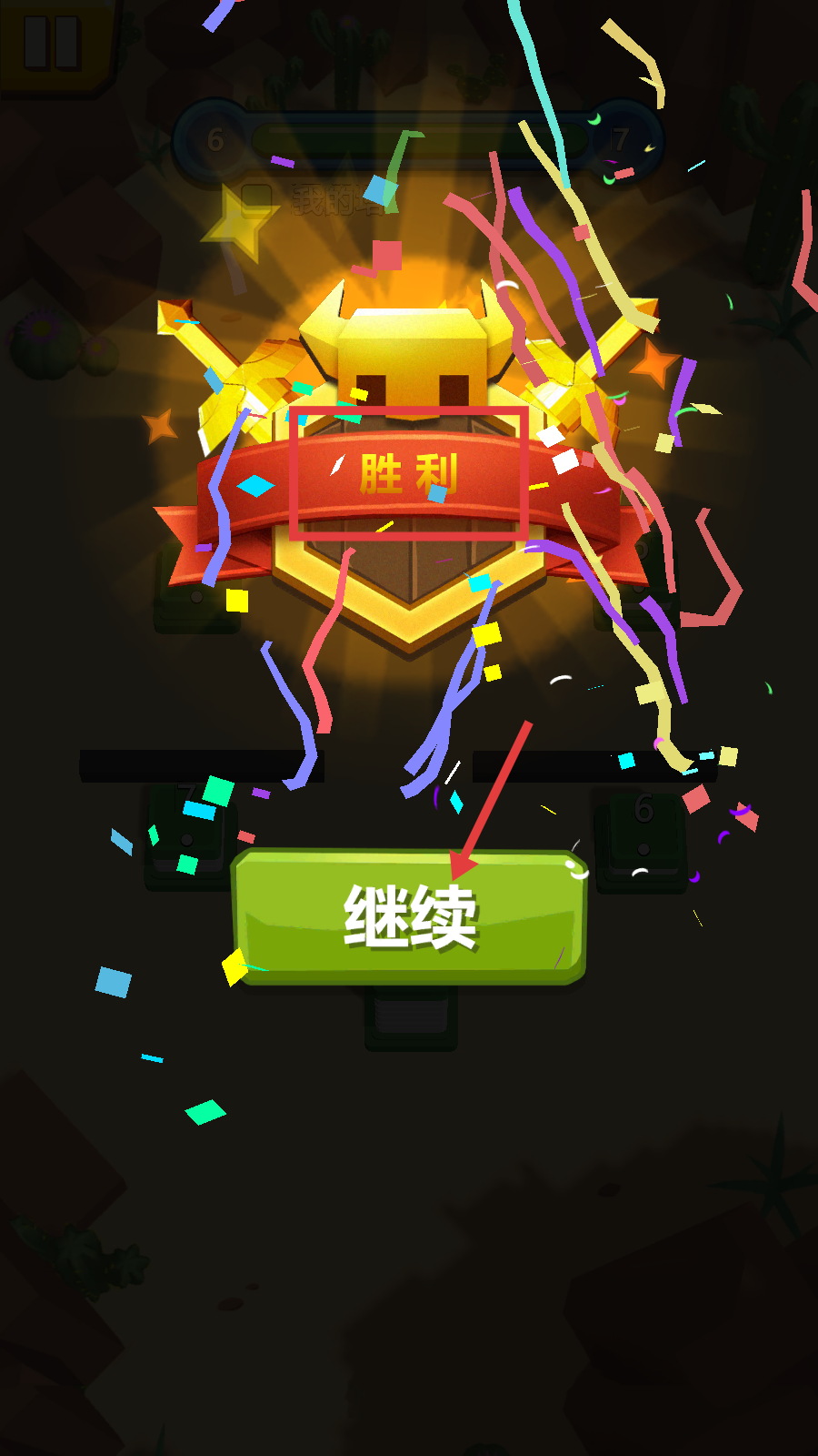 4、当进度条充满后,击败所有敌方塔即可获得胜利,点击“继续”按钮进入下一关,积累胜利资源。