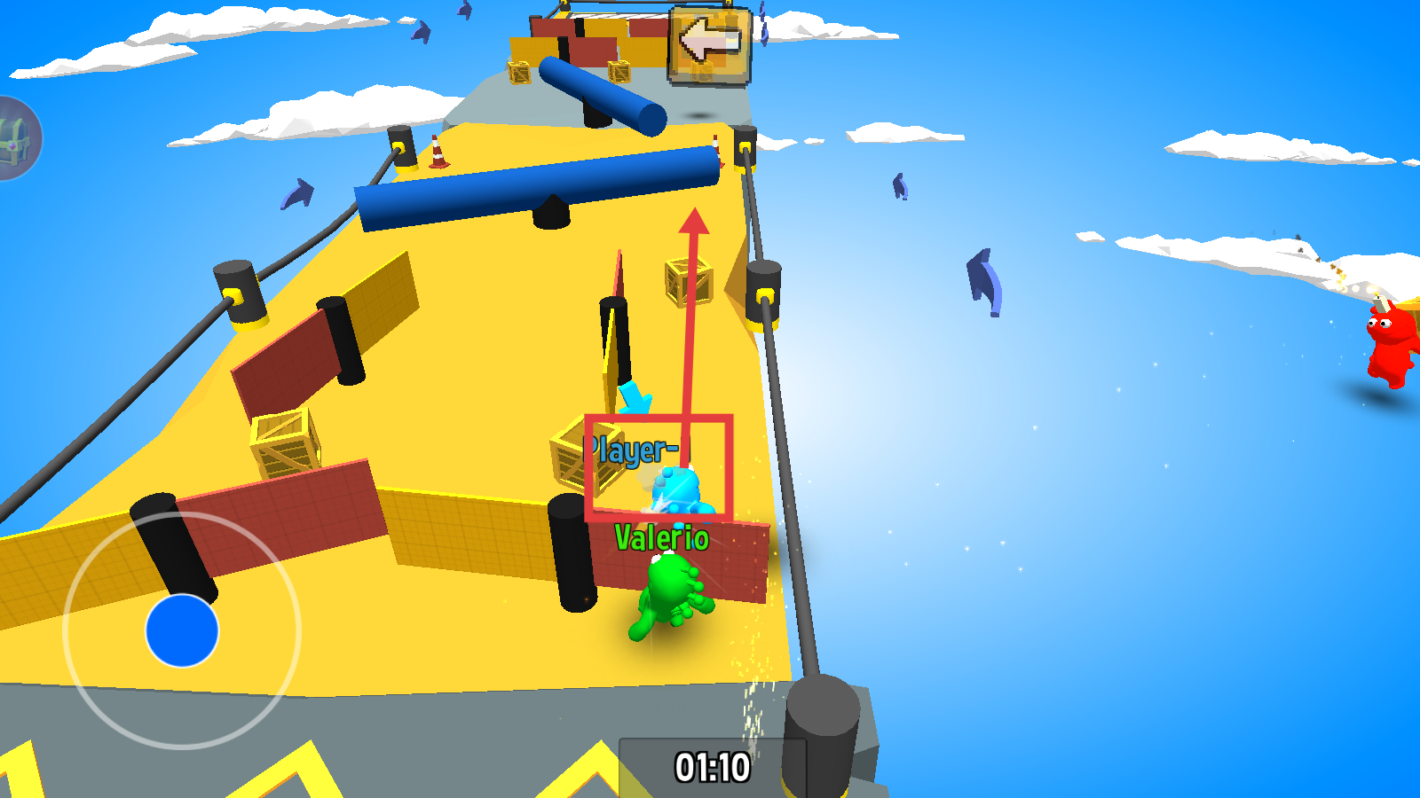 3、遇到如【Valerio】的其他玩家时,推动角色前进,穿越有障碍的场景,保持移动优势。