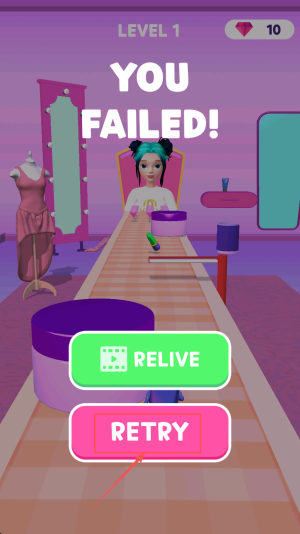 4、最后,若显示“YOU FAILED!”,点击“RETRY”重新挑战即可。
