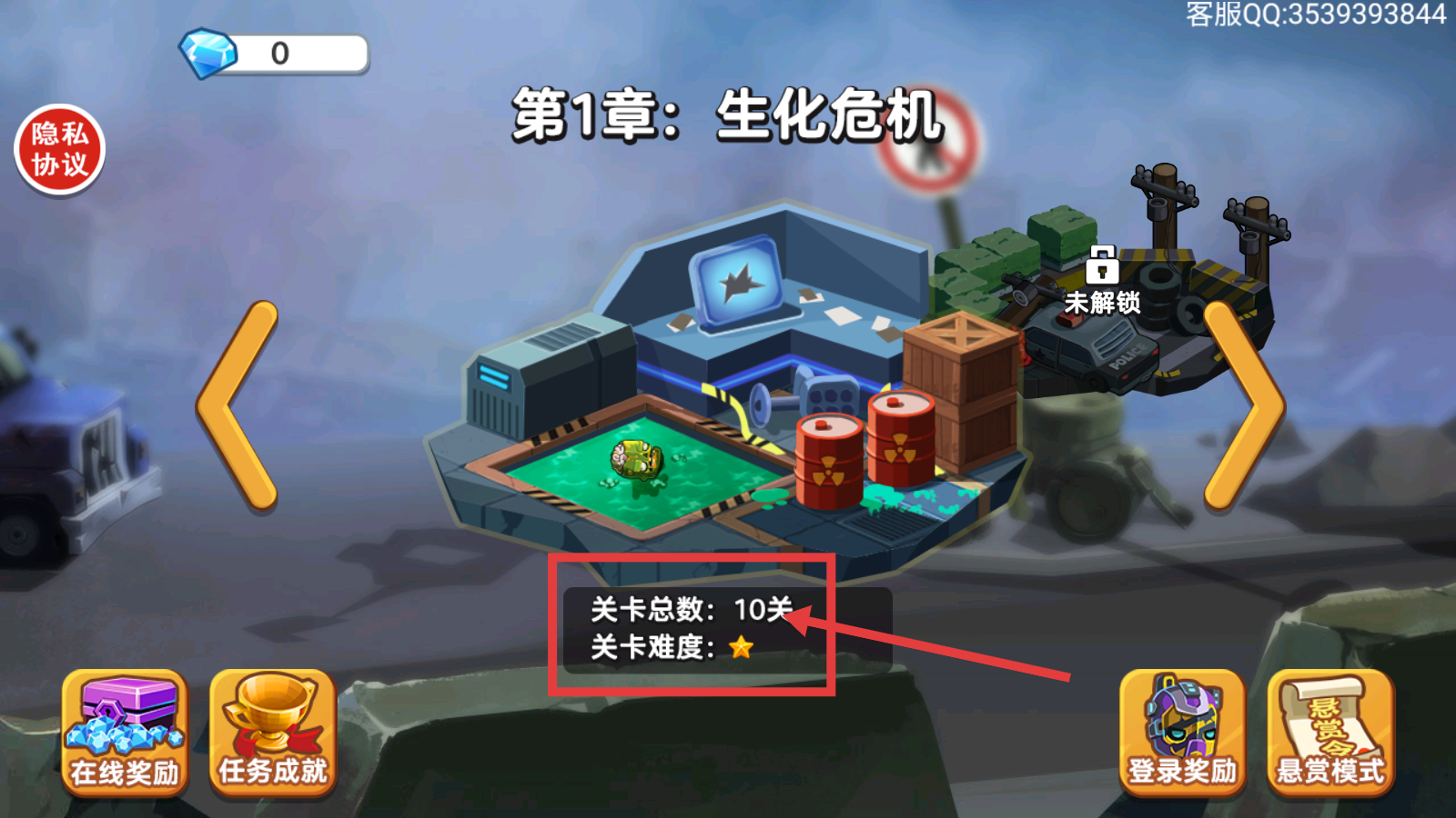 1、了解【第1章-生化危机】,关卡总数10关难度★,按顺序挑战可逐步解锁新区域,新手可先从该章节熟悉游戏。