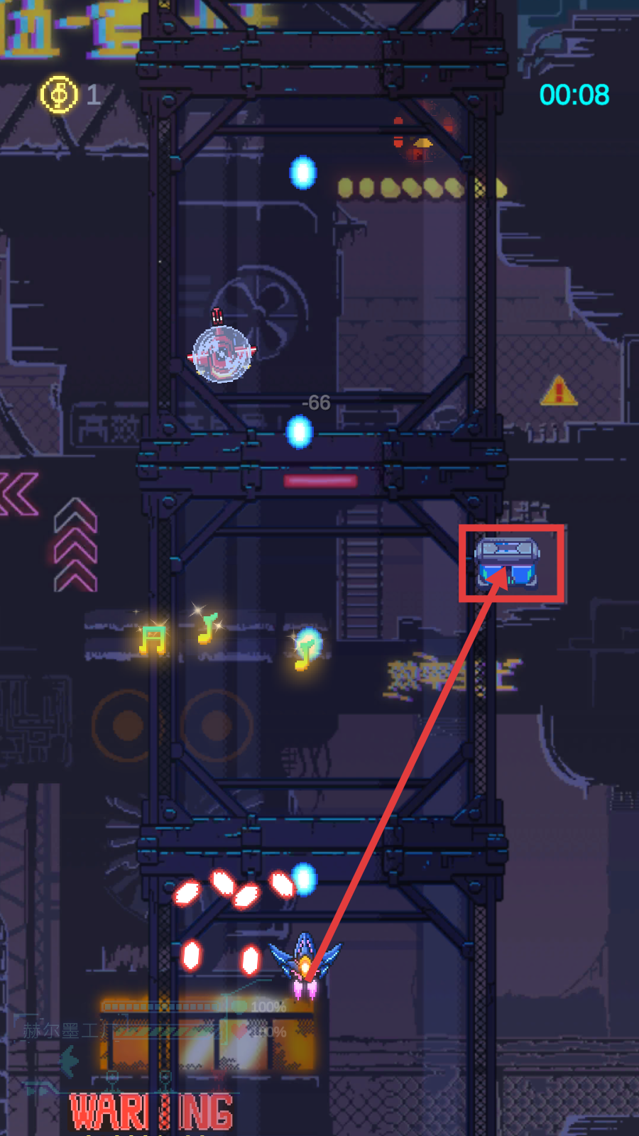 3、战斗中留意【宝箱】,击毁后获取道具,提升战机战力,助力通关。