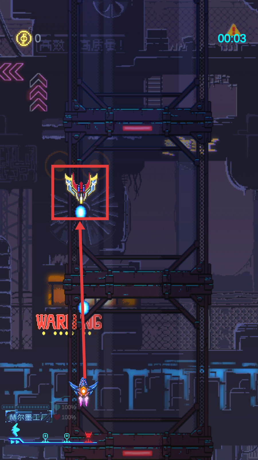 2、战斗时注意躲避攻击,瞄准【敌方战机】发射,积累分数,稳步推进关卡。