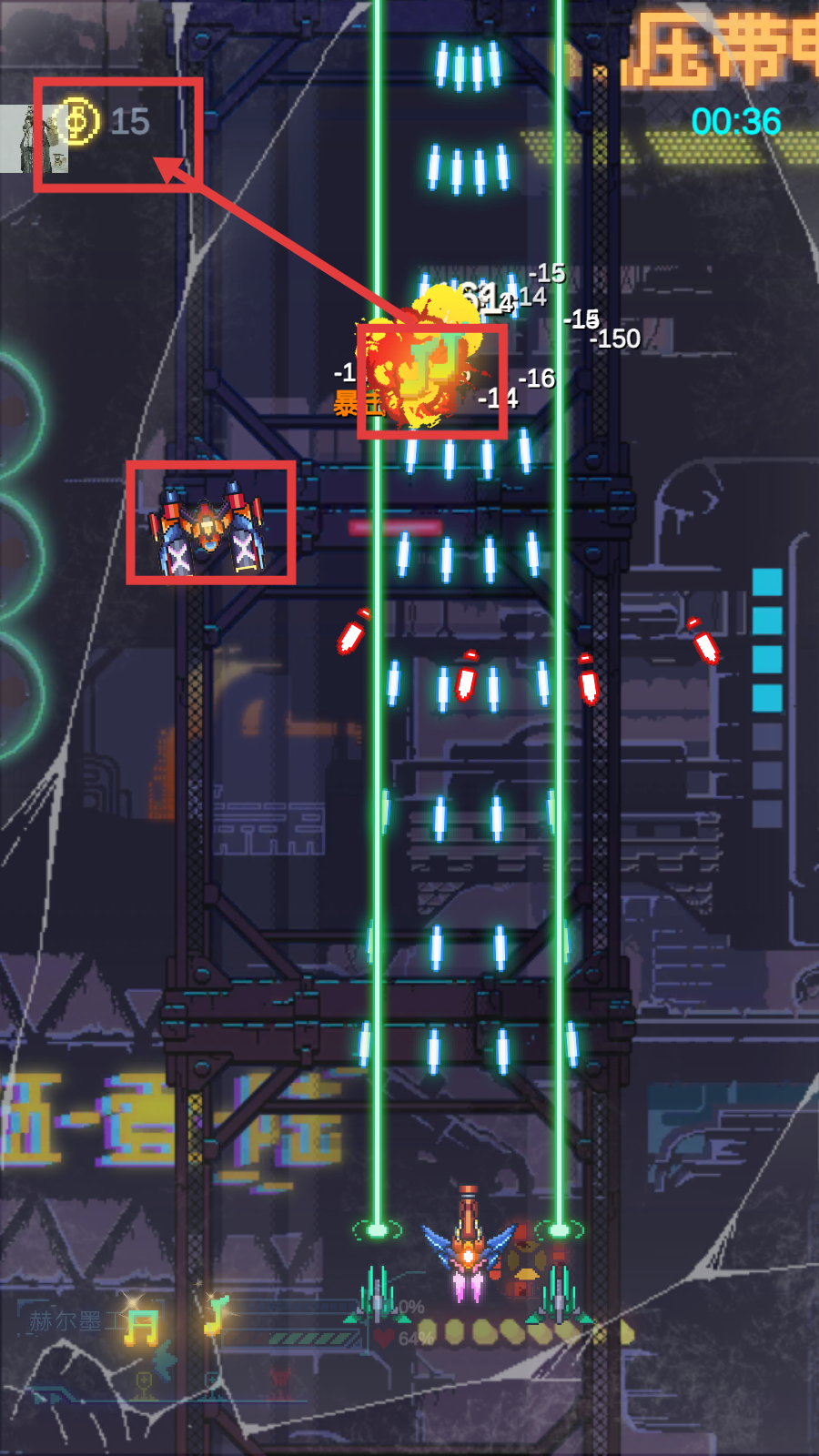 3、战斗中收集【金币-15】,触发暴击伤害,高效清理敌人,稳步推进关卡。