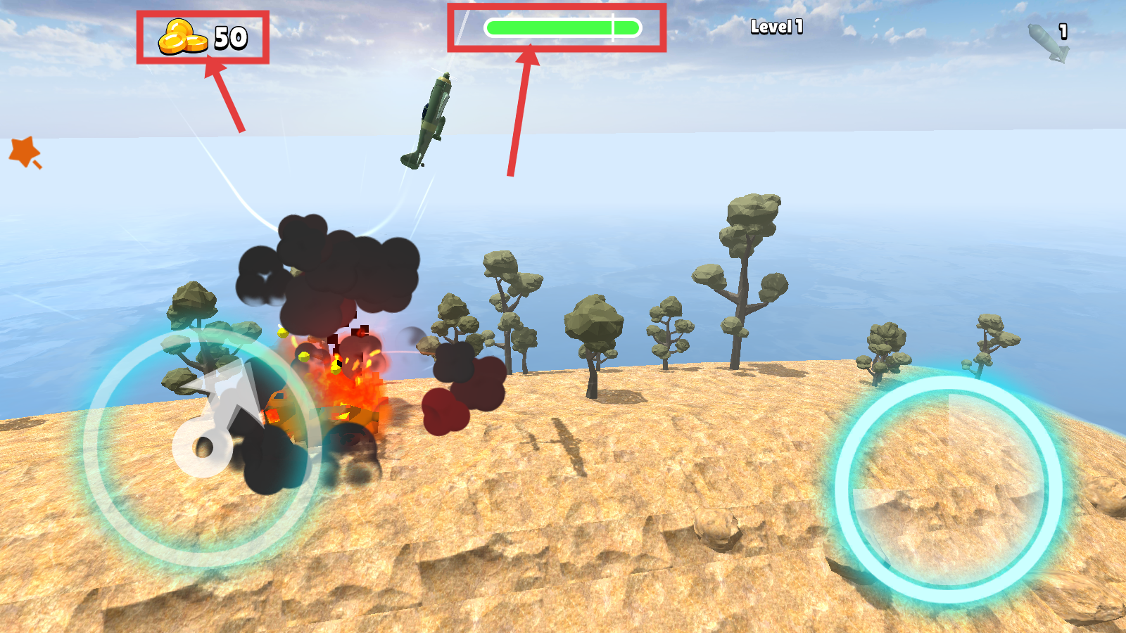 2、击毁敌方车辆可获取金币,合理使用炸弹,精准打击目标,积累资源。