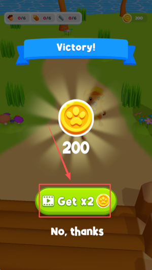 4、最后,完成关卡目标后,可以选择观看广告来获取双倍奖励。