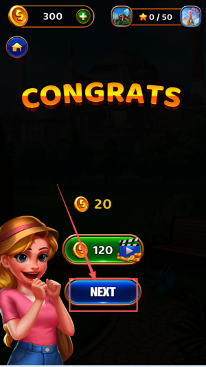 4、最后,完成关卡后,点击“NEXT”按钮领取奖励并进入下一关。