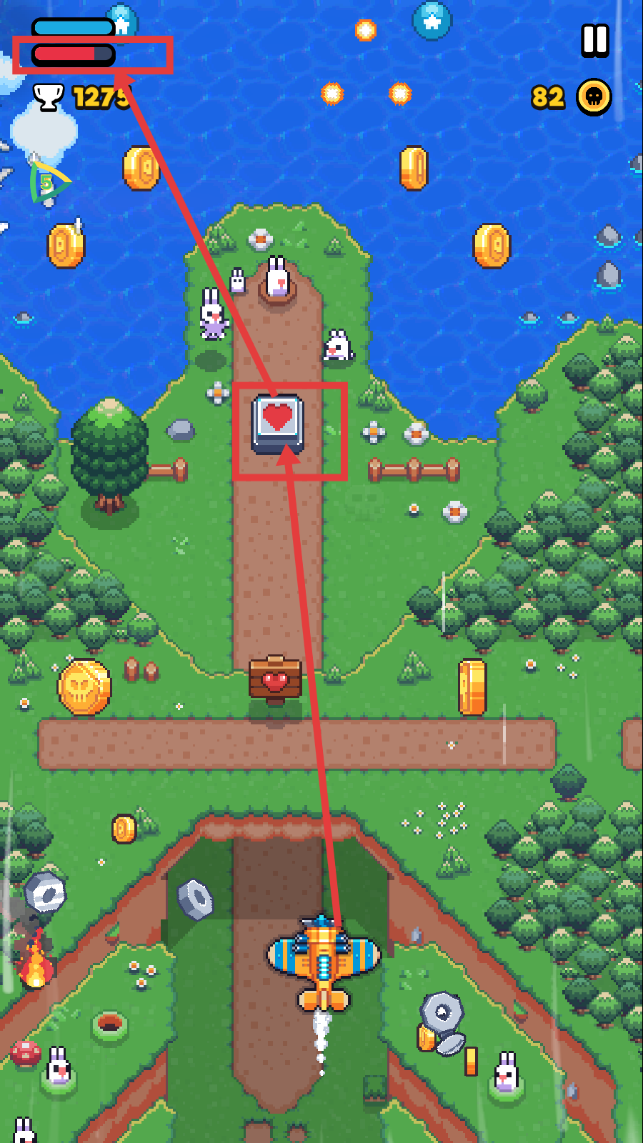 3、关注血量,收集【心形道具】回血,保持战力继续战斗。