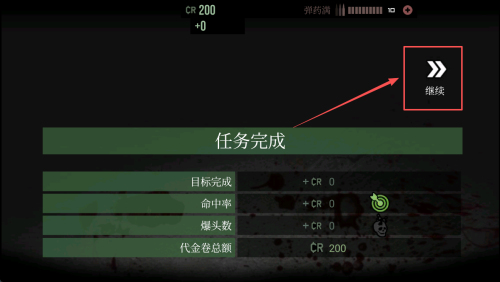 3、如何完成任务:在完成射击后,查看任务完成情况,点击“继续”按钮,进行下一任务。